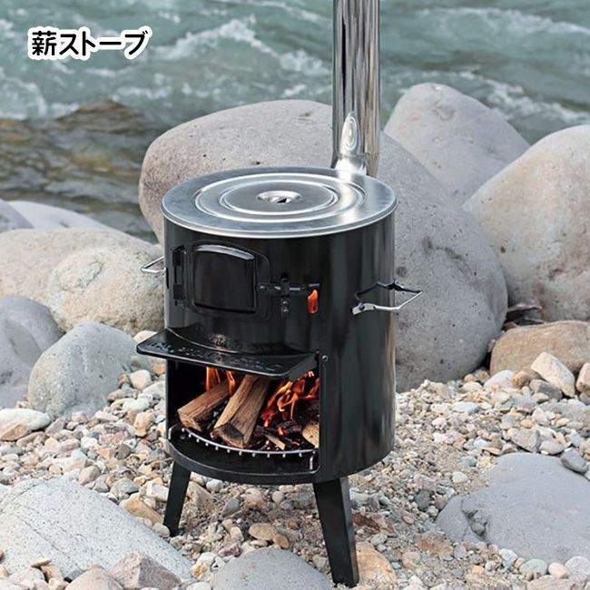 アウトドアシーンに合わせた5つの用途に使えるかまど型の煙突ストーブです。