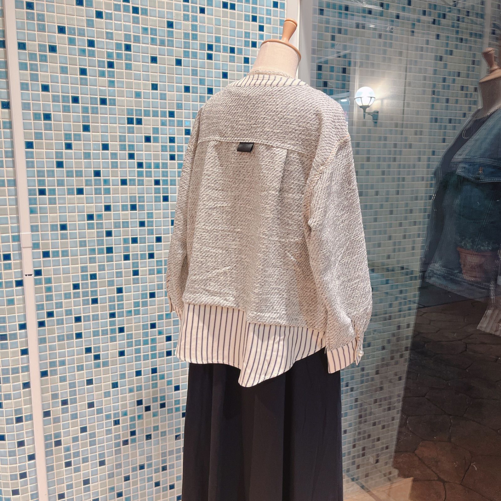 デニム×ツイード ブルゾン ジャケット 異素材 Vネック パールボタン ジップアップ