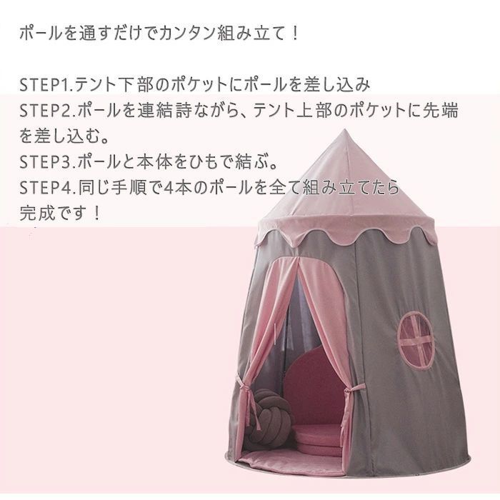キッズテント プリンセスのお城 折りたたみ 簡単組立 収納バッグ 窓付き 子供用テント 室内テント キャンプセット おもちゃ 小学生