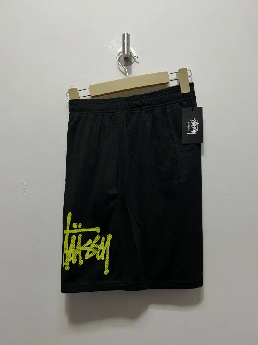 STU SaTurday of Us ブラック メッシュ ハーフパンツ 蛍光 ロゴ XL