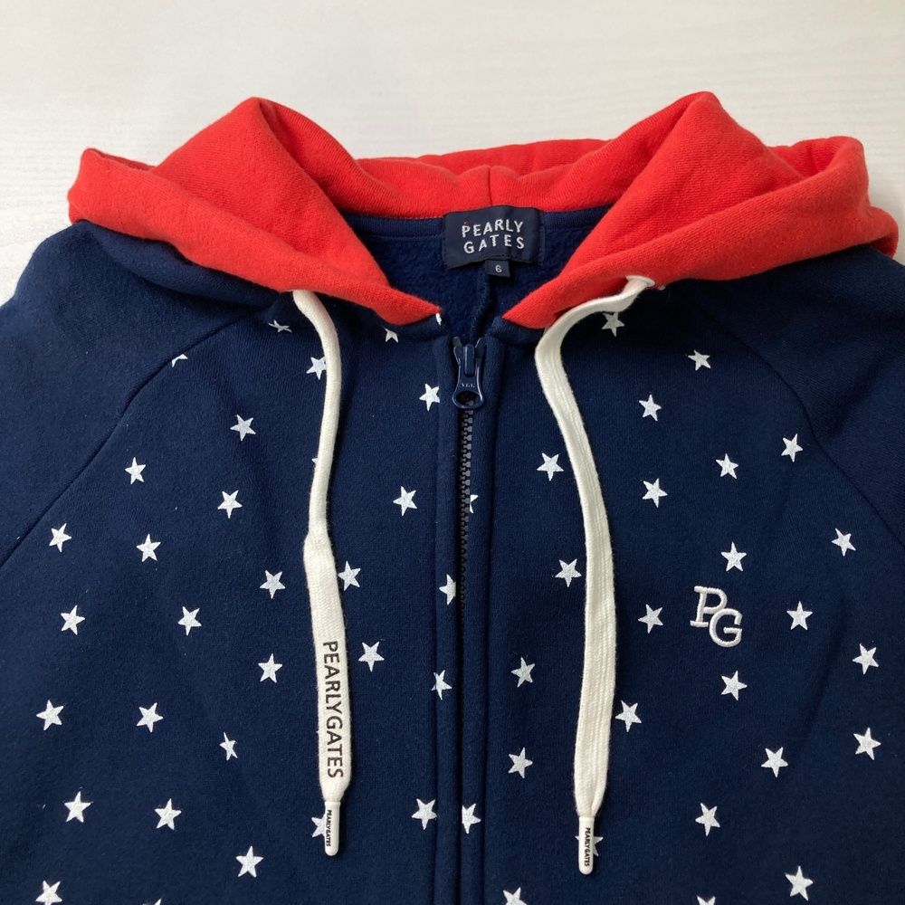 サイズ 6 PEARLY GATES パーリーゲイツ 裏フリース スウェット ジップパーカー 星柄 ネイビー系 ゴルフウェア メンズ ストスト