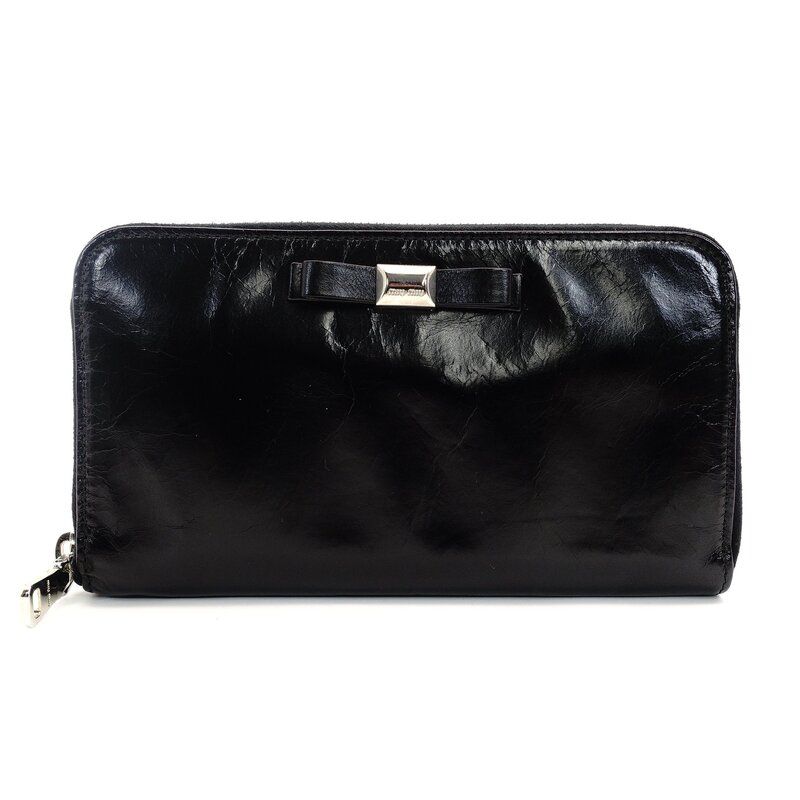 ミュウミュウ MIU ラウンド ファスナー 長財布 ブラック パテントレザー 黒 リボン 7-9-334