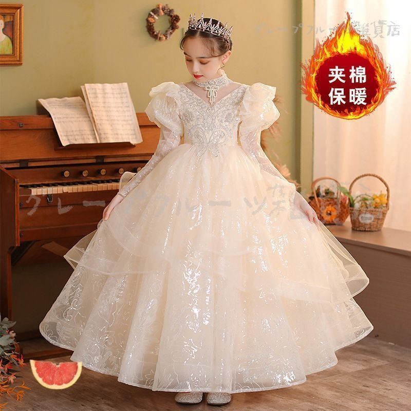 ロングドレス 秋冬 フォーマル 子供 ドレス 女の子 キッズ ピアノ 発表会 フォーマルワンピース パーディー 上品 エレガント