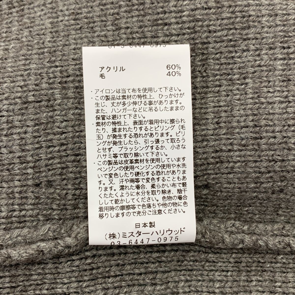 N. エヌハリウッド ウール レザーロゴジップ コンパイル ドライバーズ オーバー ニット ジャケット 40 グレー メンズ