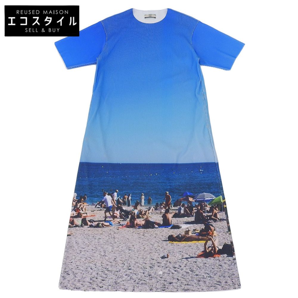 タイプ)美品 プリント リブ ハーフスリーブ ワンピース レディース ブルー F 23SS NON-23S-0328