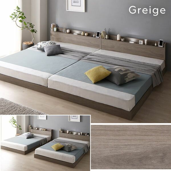 ベッド ワイドキング 240 SD 国産ポケットコイルマットレス付 レギュラー シャビーオーク 低床 宮付 宮棚付 照明付 ライト付 コンセント付 頑丈 ロータイプ すのこ ローベッド ベッドフレーム すのこベッド フロアベッド ベット
